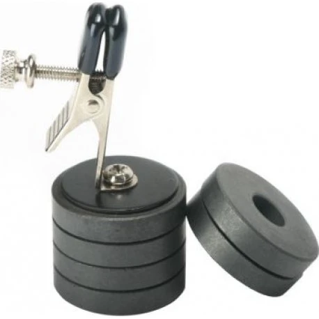 1 Pince pour téton ajustable avec 6 petits poids magnétiques amovibles.