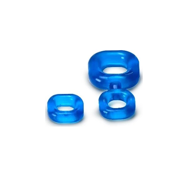 Boner Kit Ice Blue comprend un cockring carré aux angles arrondis, relié à un ballstretcher fabriqué en TPR extensible et ferme.