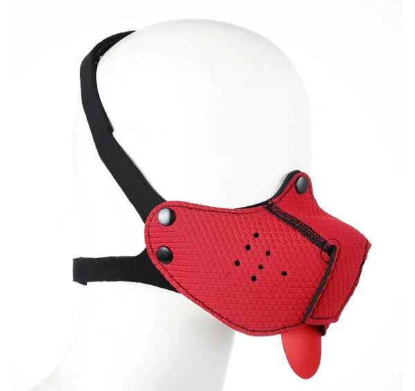 Masque Bouche Puppy Dog en néoprène rouge ajustable avec boutons pression.