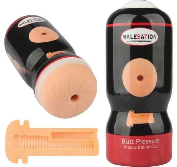 Butt Pleasure Masturbation Cup prĂŞt Ă l’emploi, est un masturbateur avec un orifice en forme d’anus.