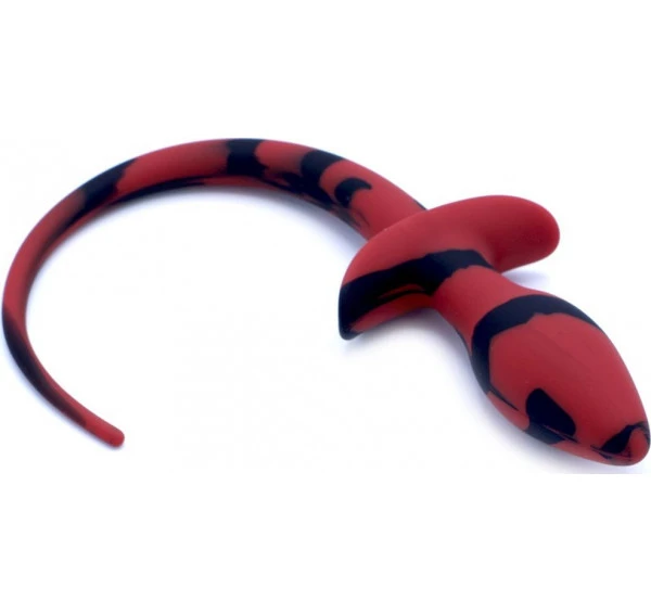 Plug anal avec une petite queue recourbée, fabriqué en silicone ferme au toucher.