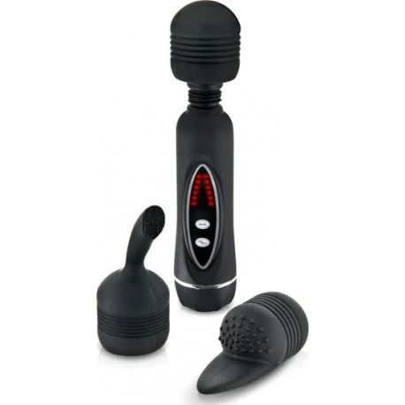 Vibromasseur équipé de 2 accessoires interchangeables en silicone souple.